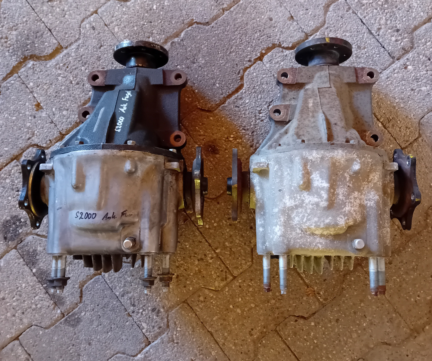 - Durch die verspannten Gummi´s konnte das Gewindefahrwerk nie richtig eingestellt werden. Die Einstellmuttern an den hinteren Dämpfern waren um über 20mm!! unterschiedlich justiert, vorne etwas weniger. Und der S stand perfekt gleichmäßig auf einer ebenen Betonplatte!! Das muss man sich erstmal durch den Kopf gehen lassen mit welcher Kraft da die Gummi´s dagegen arbeiten müssen um so eine Einstellung hinzubekommen!!